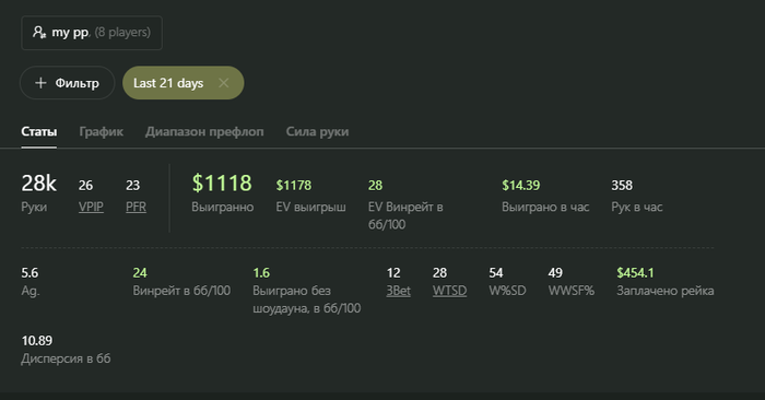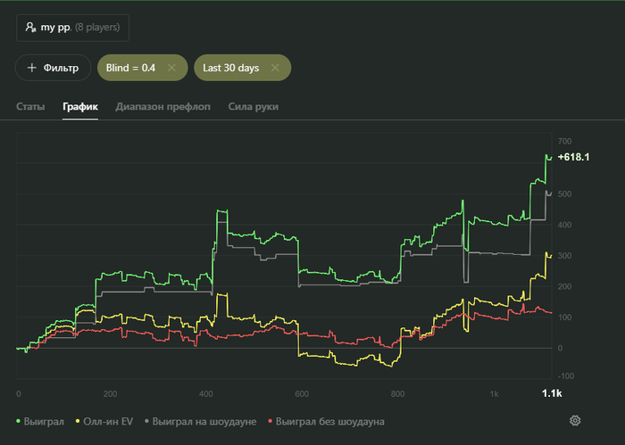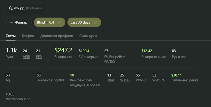 Такс, ладно. Лимит нл 25 . Отыграно 1к рук (хуйня дистанция, но всё же посмотрим что вышло):