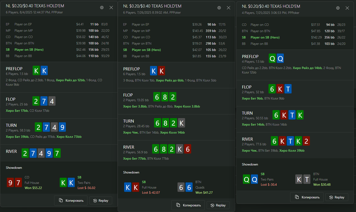 Активно подключаю нл 20-25, но вот беда в том, что там где я играю, эти лимиты мертвы, и я за последний месяц откатал там, ну хуй знает , от силы 1к рук. Раздачи с этих лимитов скину ниже.