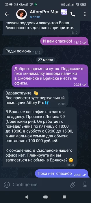 behappy @ 27.03.26Для налички я пользуюсь Aifory, уже больше полутора лет, никаких проблем. Разные города от разных сумм: например Москва и Краснодар всего от 100$.