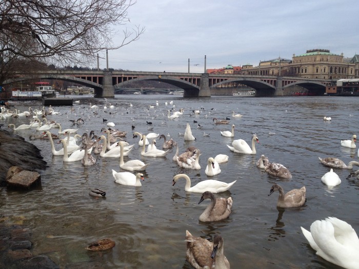 Сегодня пошли погулять )) Прага конечно супер! Что говорить - это нужно видеть Вышли на набережную и пошли в сторону главной достопримечательности "Карлова моста" На удивление оказалось что в местной речке Влтава плавают свободно лебеди