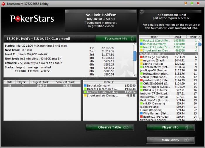 Сейчас, когда я оказался практически на дне, я оборачиваюсь назад. В начало своего покерного пути, ведь я снова оказалась на линии старта. Год назад я играл совсем низкие лимиты и в принципе не парился. Сейчас я смотрю на суммы топа 3 в этих турнирах, и у меня поднимается паника. Одно дело начинать с этих турниров, и совсем другое вернуться к ним. Ну, вы меня понимаете. Думаю, я не первый, кто проиграл практически весь банкролл, а потом возвращался на свои лимиты.