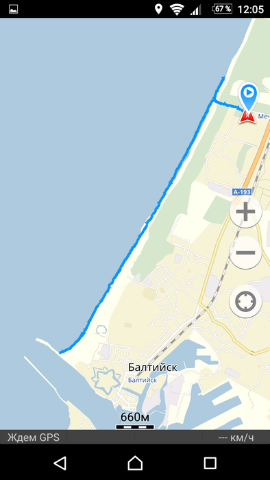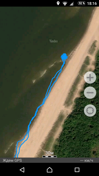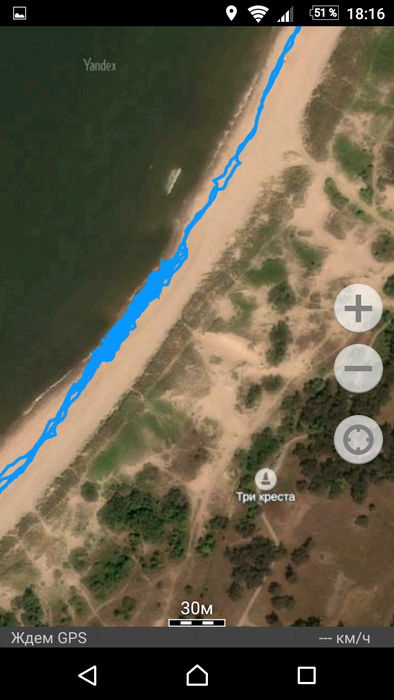 Прошелся сегодня в ночи с фонариком после ветерка (уже 3 недели отпуска на излёте, а серьёзных ветров/штормов всё нет и нет). Запустил замечательную прогу жпстрекер, чтоб прикинуть сколько нахаживаю. А то прихожу с прогулок за янтарём - ноги не шевелятся, суставы ноют, с чего бы? Понятно, что за 6 часов не присев ходить, набежит прилично. Но что бы 16 километров - не думал что вот столько..