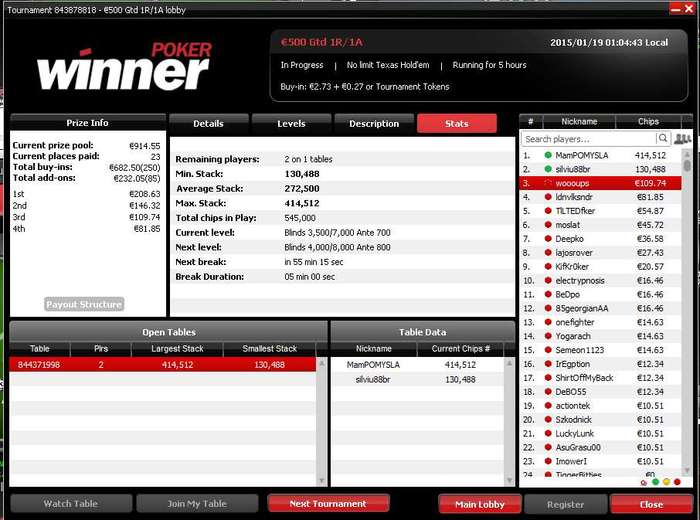 SB Wooups (2,236k) 28bb BB patrickbocsa (3,710k) 46bb Blinds: 40k/80k Ante 10k