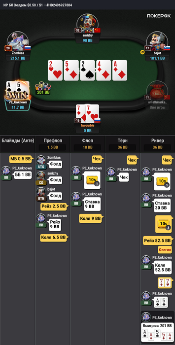 И в этом случае у него гигантское количество велью против которого я сыграл в жесткий минус ев.