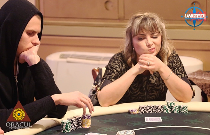 В главном же турнире сегодняшнего дня сделано 45 входов, за столами продолжают борьбу 43 спортсмена. Что примечательно, оба вылета случились с одним и тем же человеком. Регуляр серий UPS, Владимир Булгаков, поймал два динамических кулера и выступление на сегодня для него закончено. Даже счастливая фишка не помогла выиграть с против на доске