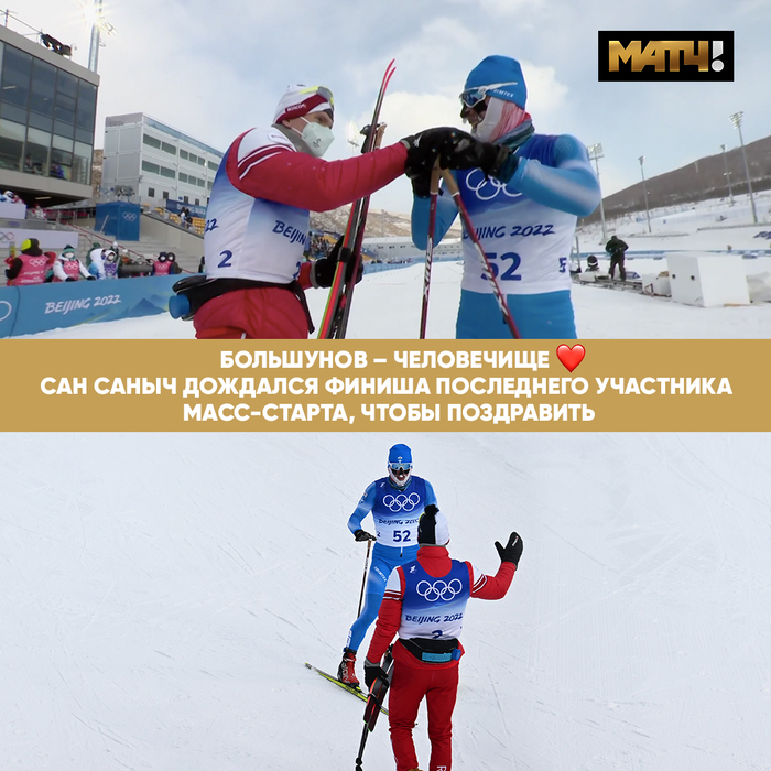 Поздравляю Большунова – короля Олимпиады, он великолепен. Бьем поклон. Бронза Крюгеру – он пытался. Поздравляю Симена с бронзой.