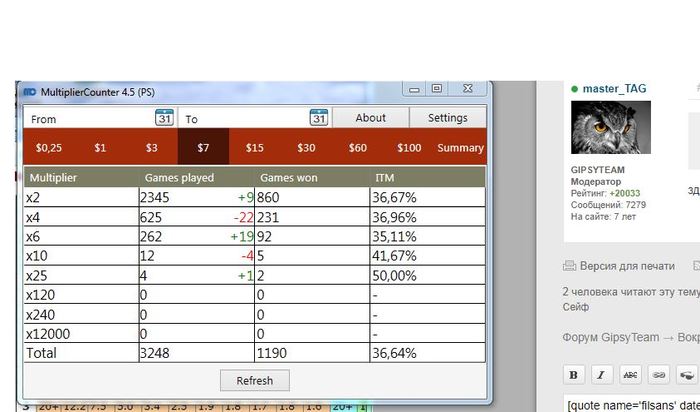 как посмотреть, сколько, какие множители сыграны ы спинах