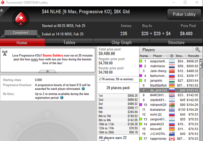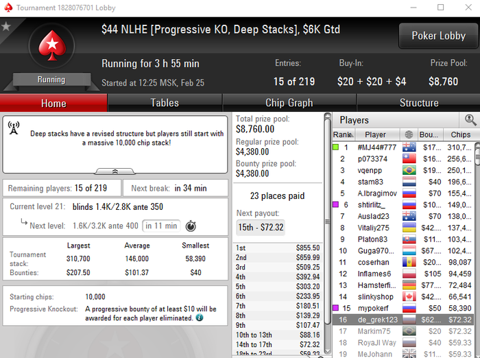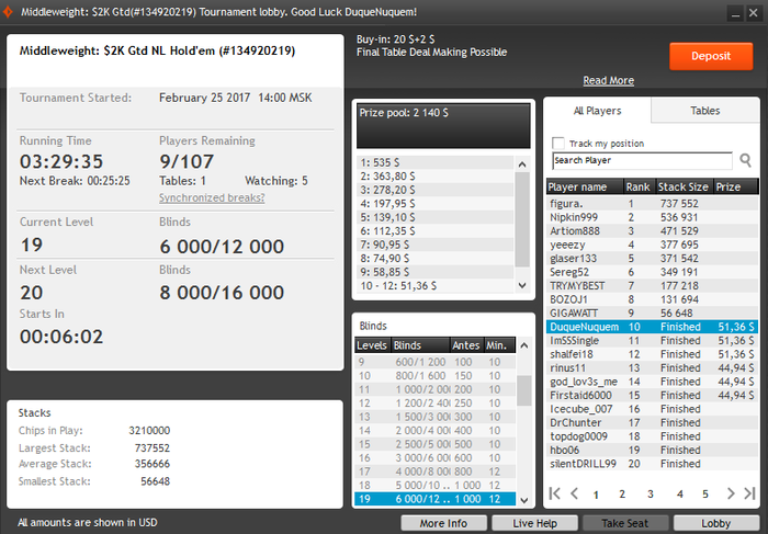 "Моих" турниров там всего три, саты на мэйн играть бесполезно - я проигрываю все хэдзапы, а там только 1 путевка. Хз короче, подумаю еще пару дней, создавать тему с продажей или нет. Запалить пару тыщ чужих баксов ради красивой фотки с фишками в руке?