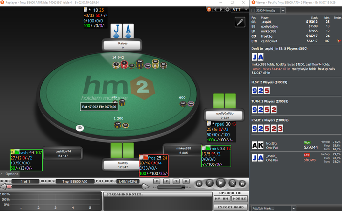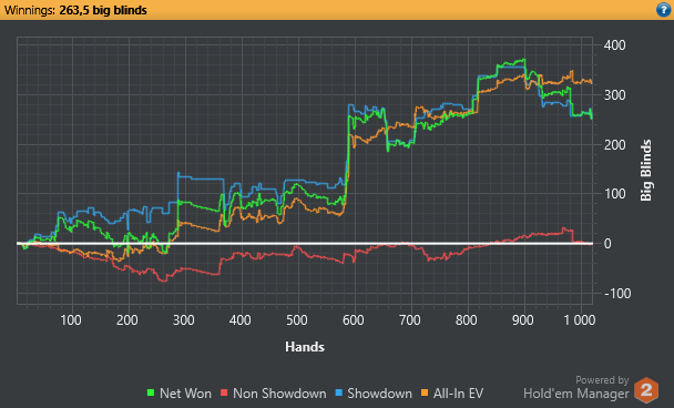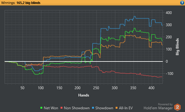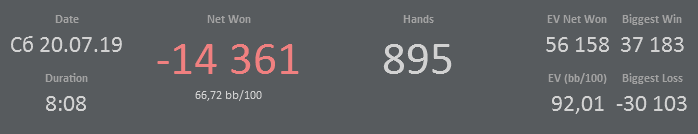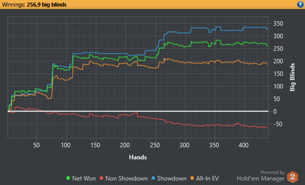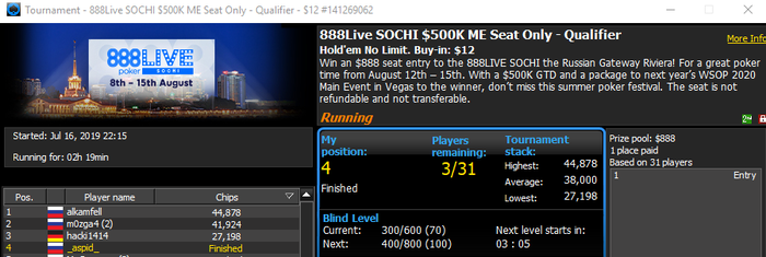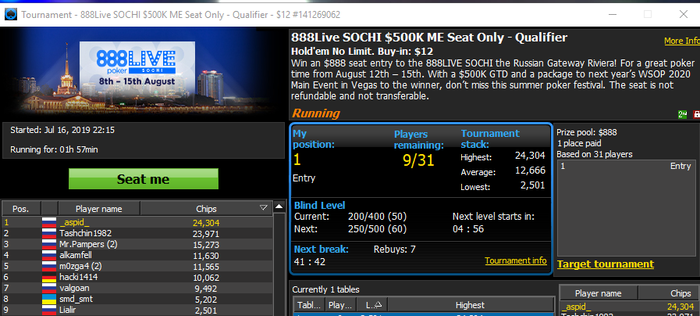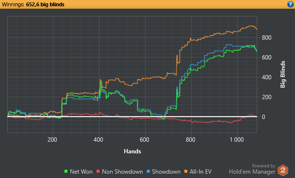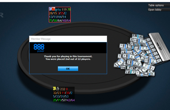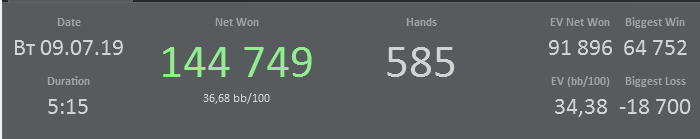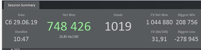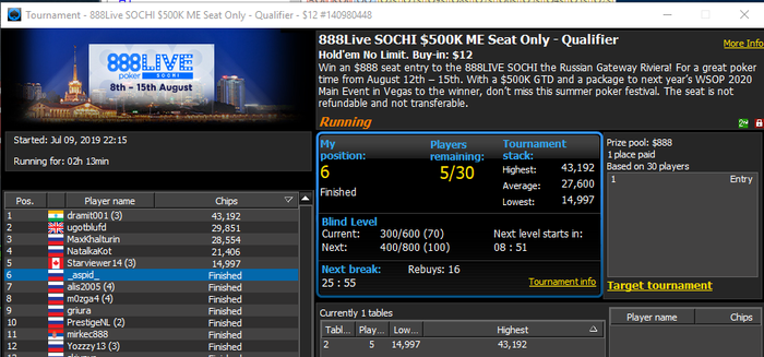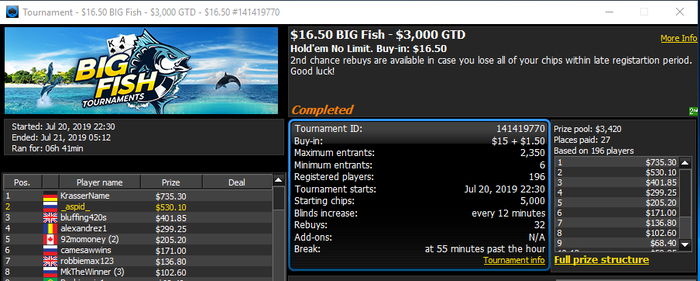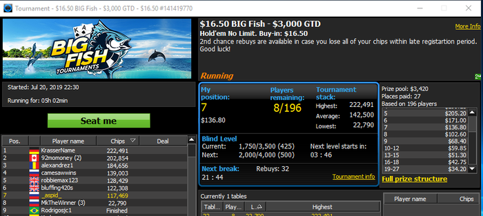Не дотащил, но опп определённо сильнее был. Работаем дальше. Кстати, третий раз уже - определяю за столом сильного оппонента и именно он проходит дальше. Причём, как правило, они заходят на финалку коротышами или вообще "огрызками". С одной стороны можно не "пробивать" их конечно, а с другой лучше понимать с кем катаешь. В этих сатах самое сложно пройти агрофишей, им вообще по х... с чем заходить. Под них сложно подстроиться в начале, хрен поймёшь их диапазон.