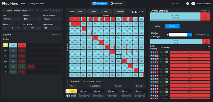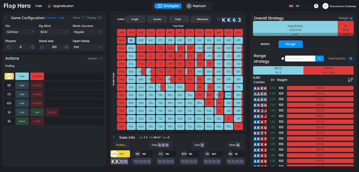 Torchidze, ну вот это ты прям зря, ладно в нл, где в целом плюс-минус понятно что куда и как, да и даже задрочив префлоп, не получить такого же преимущества, каким оно может быть на твоих лимитах пло, как по мне тут прям много евшки зарыто у тебя