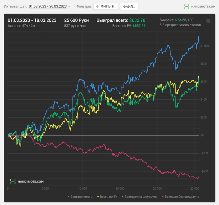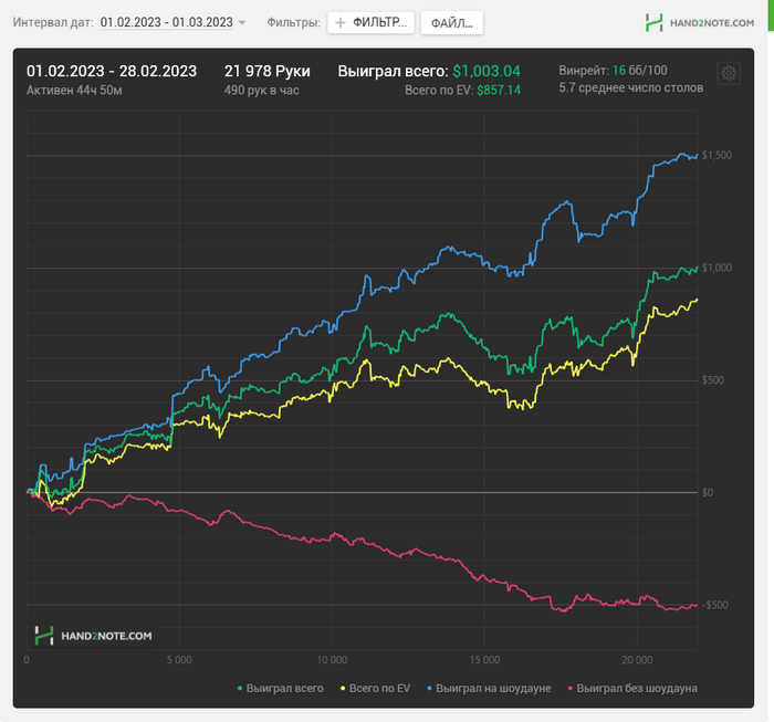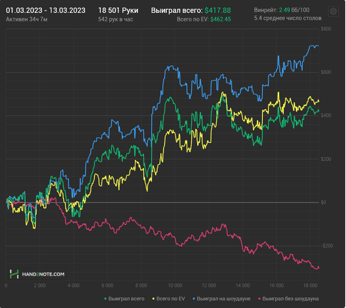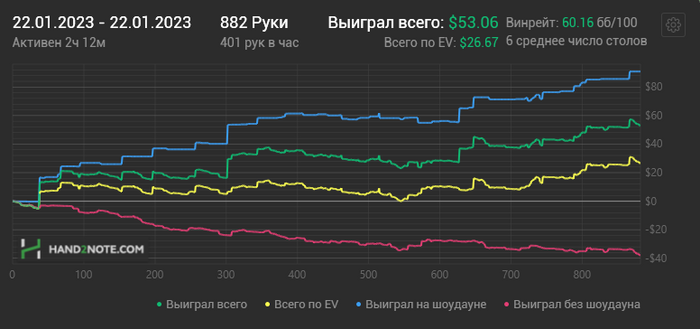 McFearless @ 22.03.23VinDrossel, ну лично для меня пока что ничего не изменилось. Только рейк сильно поднялся. По поводу селекта: на Чико он отстойный. 40% рук - регокатка на стартующих или разваливающихся столах с очередей. Но даже с таким плохим селектом(анонимными столами), огроменным рейком и как по мне дисповым гсч плюсовать можно)