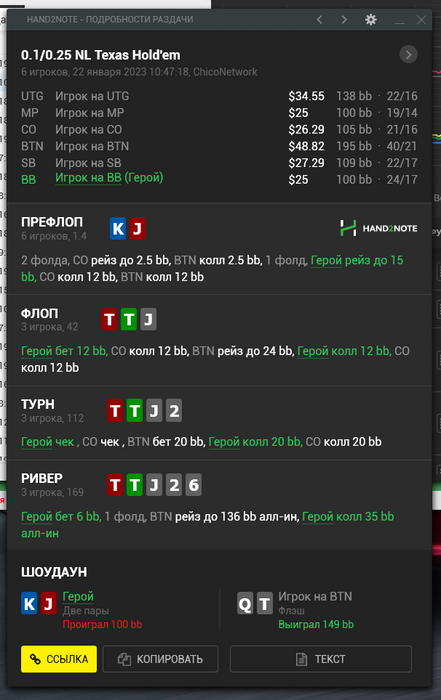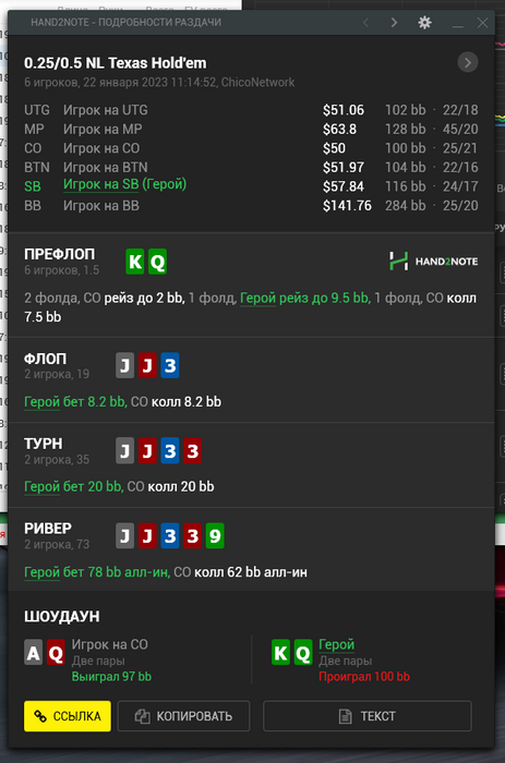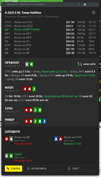 Последняя раздача сессии. Немного выкумарила ситуация, т.к. sit out next bb везде было и тупо такой куллер, как не сыграй пздц был бы..