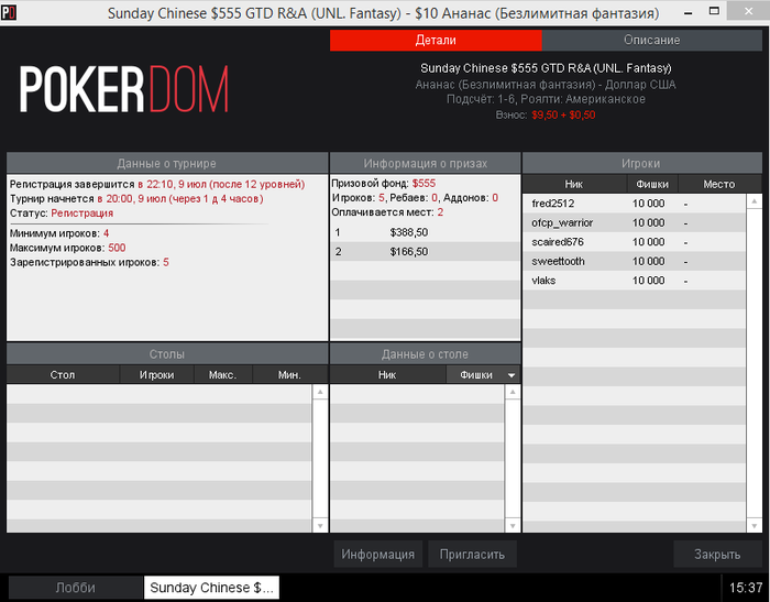 3-е место vlaks 35 очков , + 1005 кушей в борьбе за 3-4 места (билет на турнир sunday chinese +1900р)