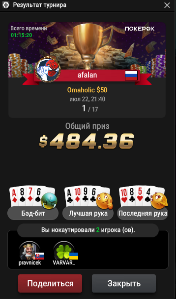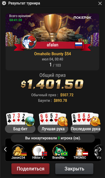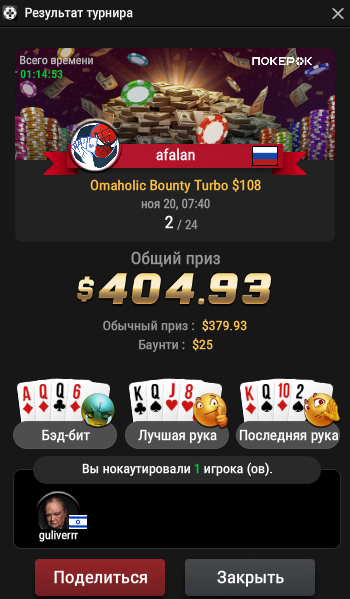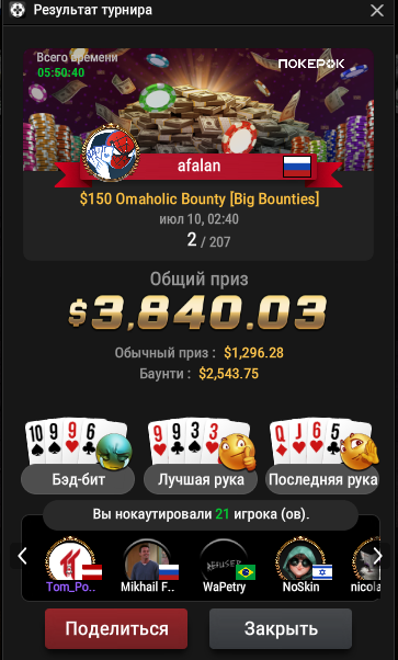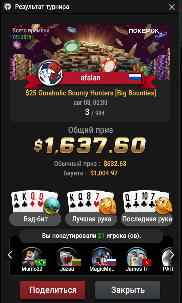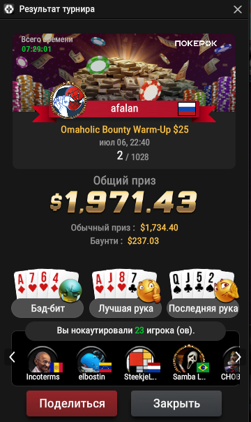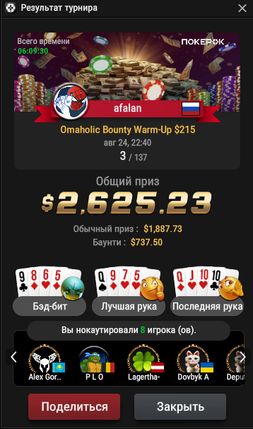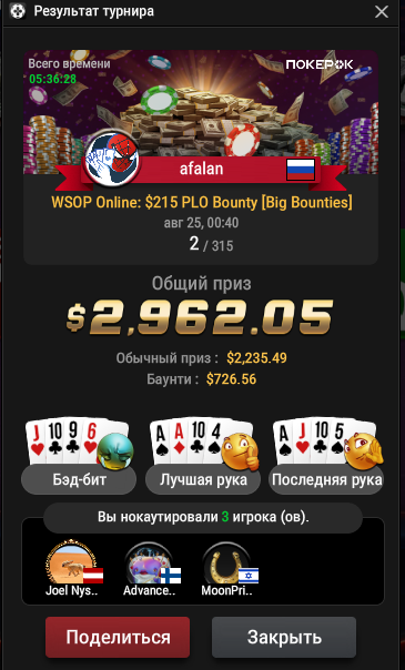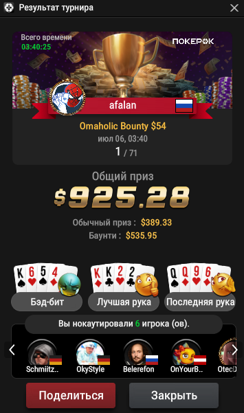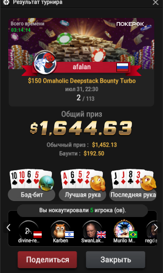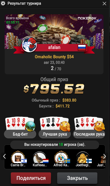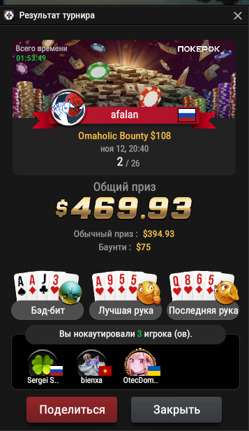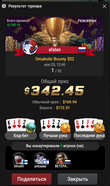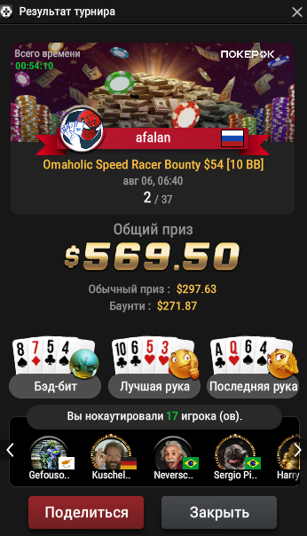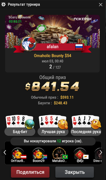 А в целом, хочется попытаться повторить результат в рамках серии Bounty Hunter, но у нас там на Омаху пара турниров, поэтому просто будем играть свою игру. Скрины всех топ-3 в посте не прилагаю, их набралось слишком много, возьму 5 топ-резалтов.