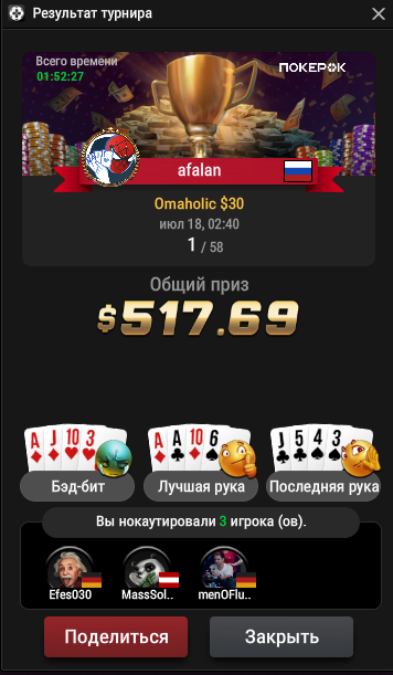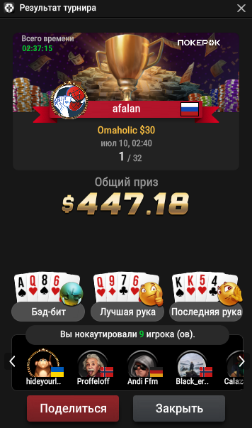 Что-то я совсем не пишу здесь, хотя уже пару недель активно вернулся за столы Омахи, ну давайте буду исправляться!