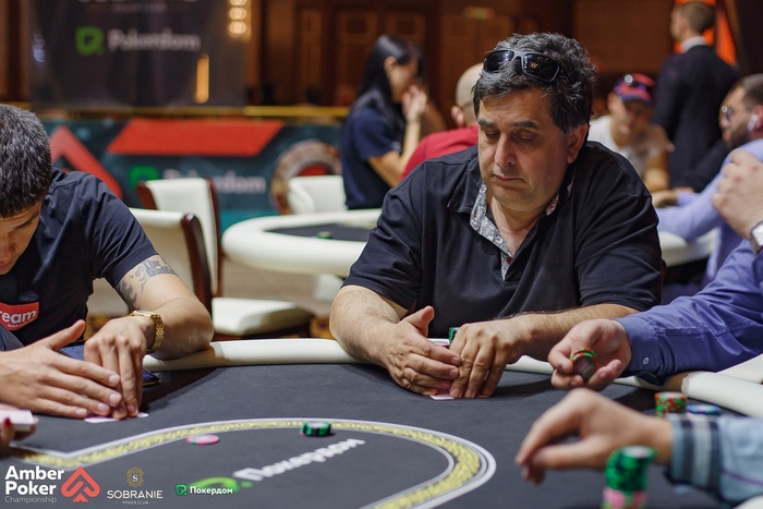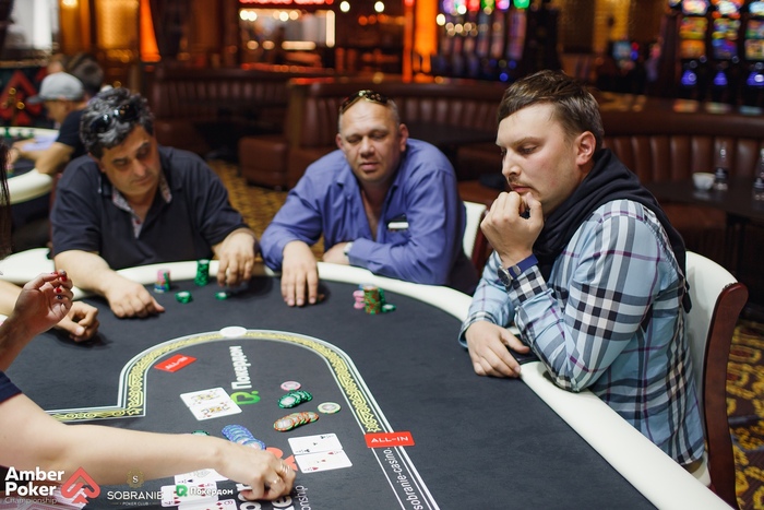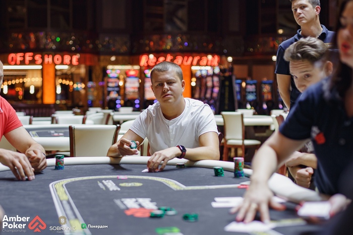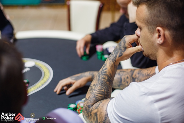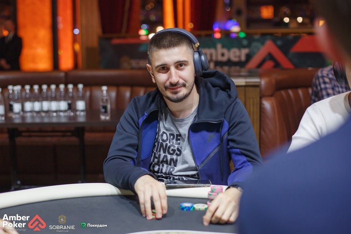 Сапронов из ранней начал лимпом, Пантюхин (СО) сделал рейз 4,000, а Герман Бухаров запушил с большого блайнда 6,400. Сапронов и Пантюхин дружно заколлировали, а на флопе Сапронов ставкой выдавил Пантюхина из банка.