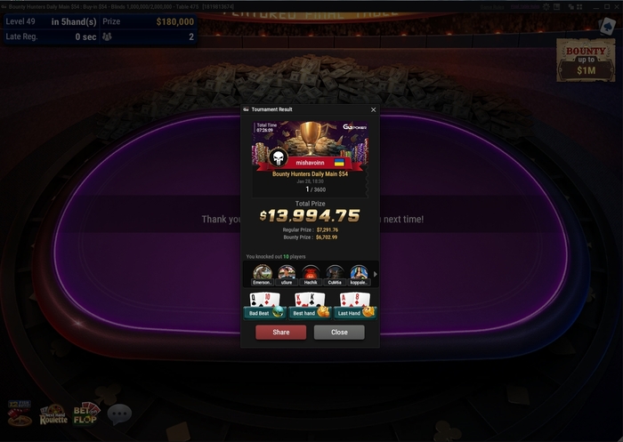 Итого бакс с турнира вырос в 6 раз, если добавить саты, которые шарк некорректно считает на гг. В этом году стремимся к 10$+ с турнира.