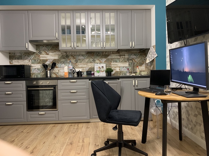 Оборудовал сразу рабочее место на кухне, что должно неоднократно спасти от статутов с АА.