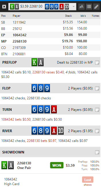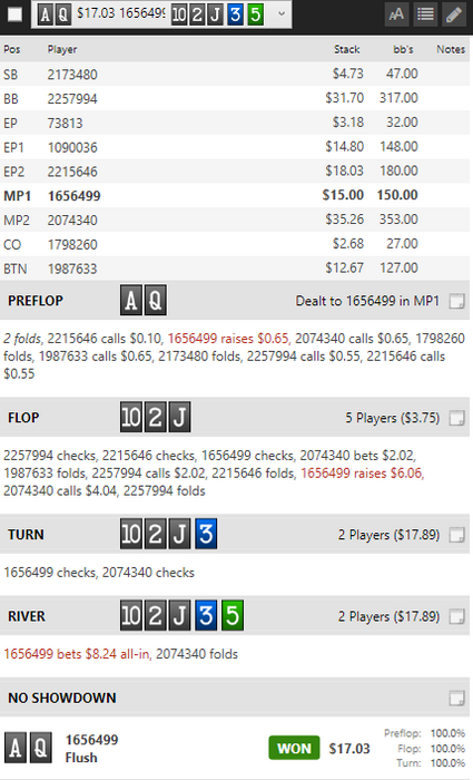 Нoldem Manager о таких не слышал и трекать отказывается. Удалось нажить 10 американских и свалить в закат. Точнее стол начал разваливаться и я свалил. Так что 25 баксов пишем и 10 - в уме.