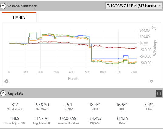 Ну а если смотрю сам, почему бы не выкладывать сюды? Ну, то есть не просто выкладывать, но и сопровождать всевозможными мыслями требующими закрепления. И я не про стандартные для покерного форума подписи под графиками а-ля "ну пиздец меня уебали" или "ебу все, что шевелиться, так как постоянно работаю над игрой и вообще - даунстрика не существует"