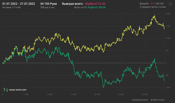 В последние дни я стараюсь по максимуму отдохнуть от всего, включая покер. Выходит с переменным успехом, хоть в сам покер и не играю, по кд захожу на Джипси + нет-нет да посмотрю что-то по теории. Покер я люблю, просто чет больновато идёт, надо вовремя передохнУть, чтобы не передОхнуть