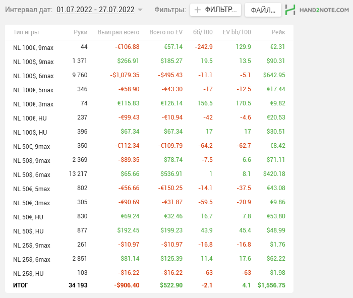 Ты можешь посчитать сам. Я считал для нл50 для нл25 ещё выше нужен лузрейт а если садишься ооп то там вообще надо чтобы фиш очень много заливал -100 и более