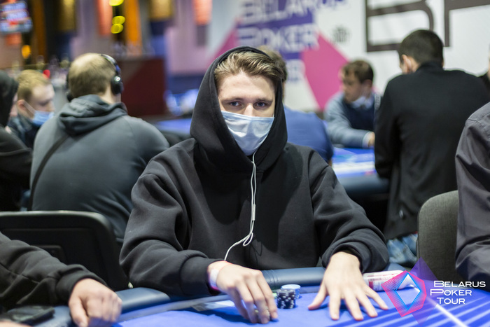 И еще одна раздача с 9 стола. 3,5к предложил префлоп Виталий Водин. Снова поддержал Савчук. Боровой Олег выставил свои 23к, Водин поставил свой — 110к. Савчук спросил есть ли 100к в стеке у Виталия и выбросил .