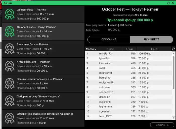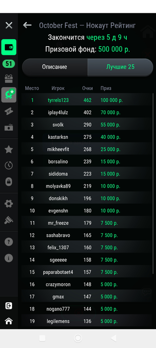 Но сильно испортило впечатление, что самым пострадавшим в очковом зачете от 2 сбоя сервака из топ 5 лидерборда был я( Первый сбой случился все же в относительно ранних стадиях турниров, но здесь твоей вины никакой.