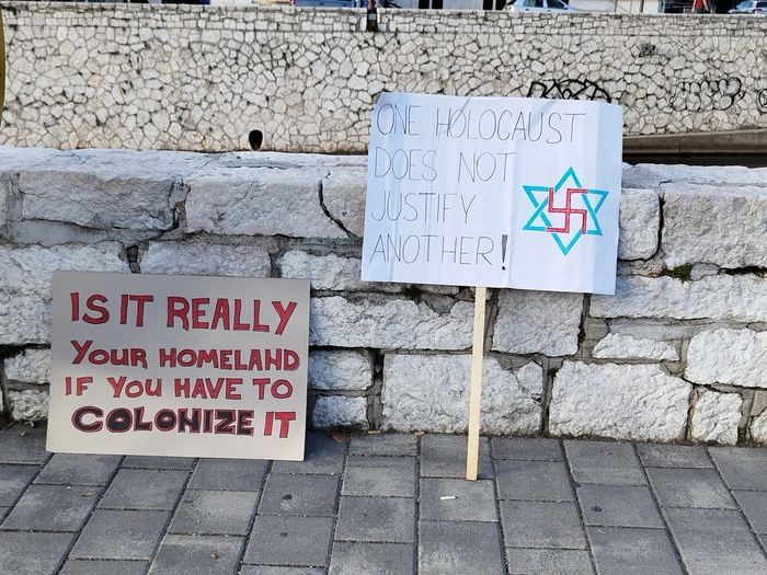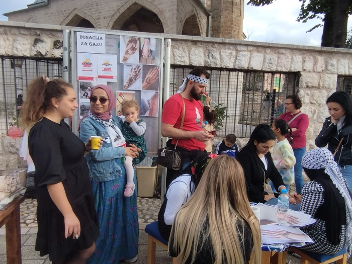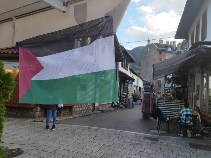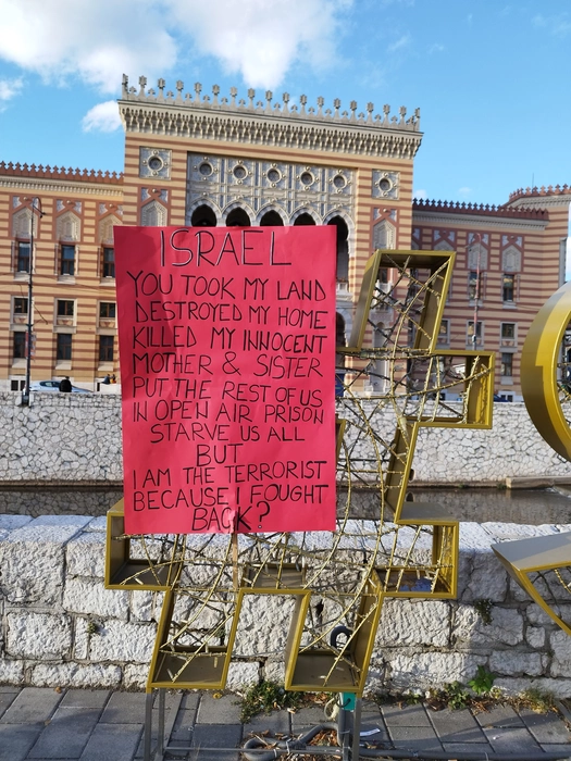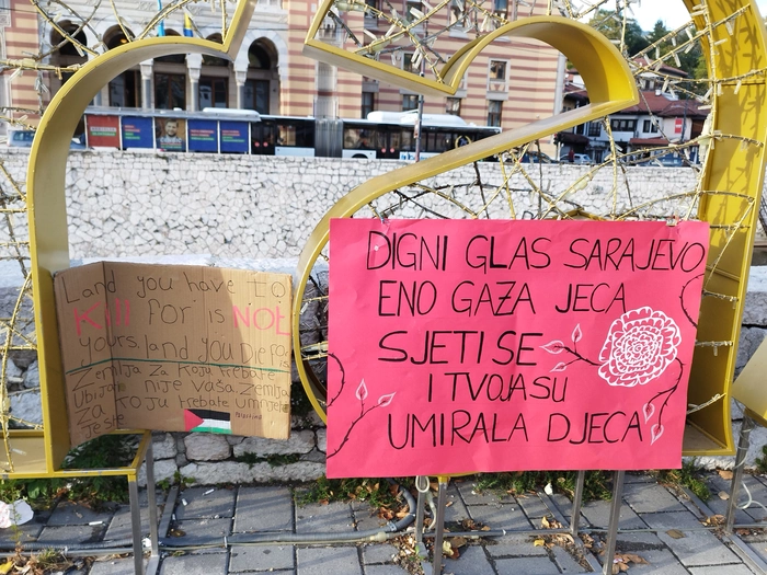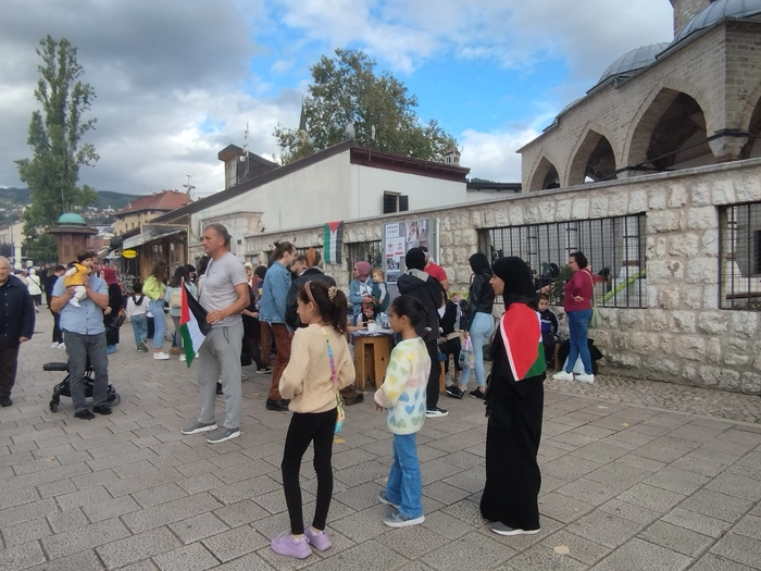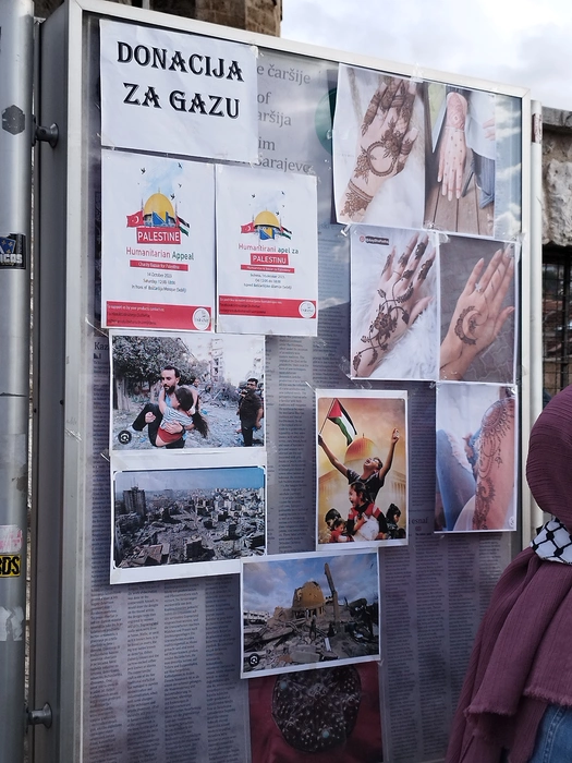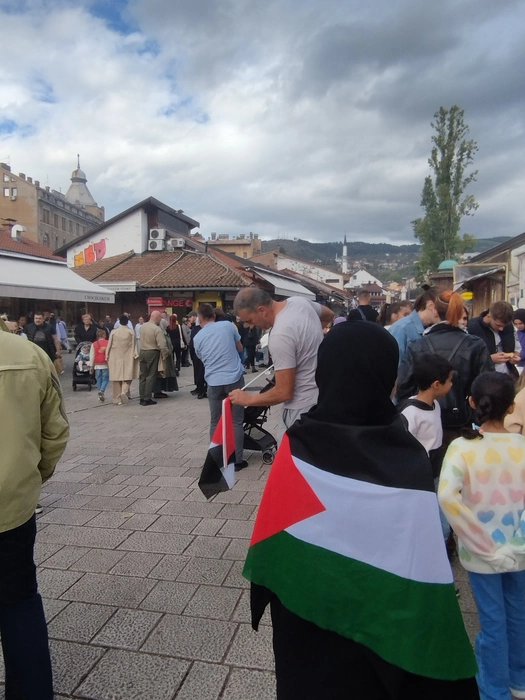 На днях в Сараево проходил митинг и базар в поддержку Палестины. Успели немного зацепить под конец. Довольно много людей с палестинскими флагами, одеждой или аксессуаром, показывающими поддержку палестинскому народу. Плакаты на боснийском и инглише(кто не знает языков - у гугл переводчика есть функционал перевода по фото).