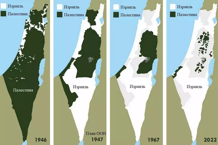 Сморчокконический, понятно, что ты предлагаешь читателям посмотреть на ситуацию с другой стороны, но зачем ты сам при этом используешь манипулятивные иллюстрации. Что должна продемонстрировать картинка с "Палестиной" и "Израилем" в 1946 году (про какие-то израильские анклавы в секторе Газа и другие несоответствия в 2022 молчу уже)? Места поселения евреев и несправедливость плана ООН по созданию Израиля, с которым арабы не согласились, и который является основным источником конфликта? Ведь никакого государства Палестина ни тогда, ни раньше не существовало, Филистии и филистимлян, давших название этой территории, нет уже тысячи лет. А палестинцами арабов, населяющих эту территорию, начали называть уже после создания Израиля. Считаешь ли ты, что создание Израиля в соответствии с тогдашними нормами международного права было ошибкой?