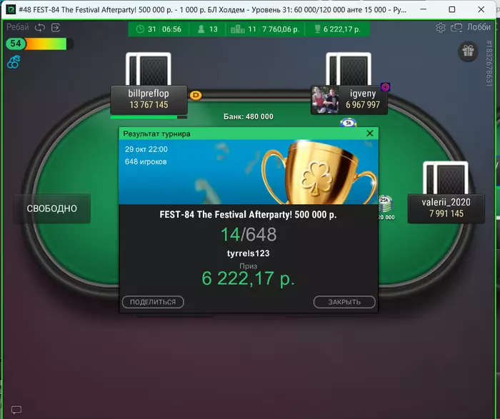 iplay4lulz @ 31.10.23Сморчокконический, поздравляю с отличным резалтом, переапался ты в целом и в крайний день, в частности, с 10бб знатно, конечно 😂😅