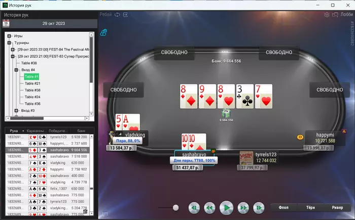 7) Несправедливые баблы финального стола. Если турнир 6-макс, то за одним столом будет играть 3 человека, а за другим 4, если 4-макс, то 3 и 2. Соответственно, кто-то оказывается в изначально невыгодном положении.