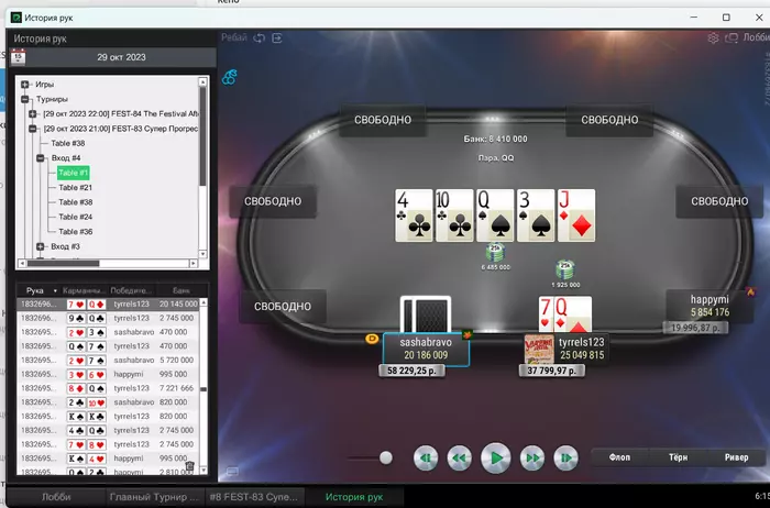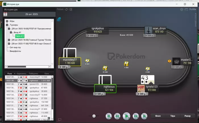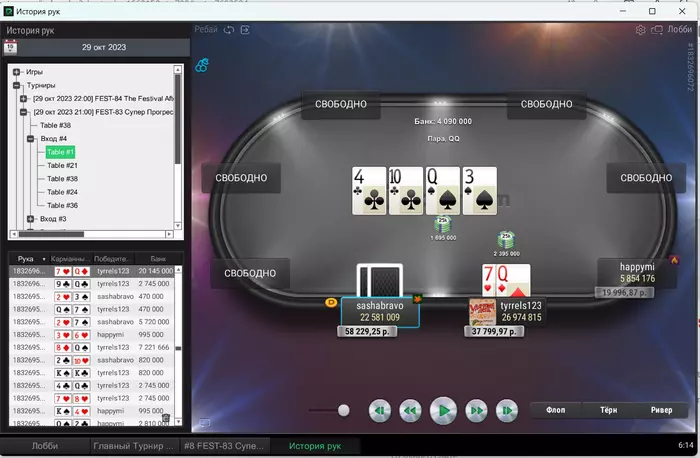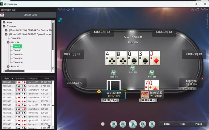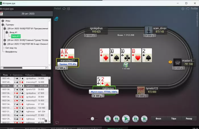 Префлоп батон открылся, а я поколлил. Флоп чек-чек. Терн пошел добирать овербетом со вторых пар, пик, разных неуступчивых покетов или А-хаев, по доске где мне можно придумать миллион дров.