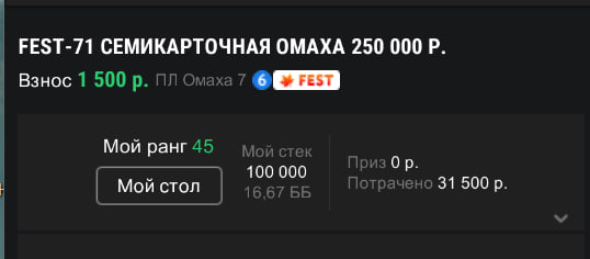 1) Самый большой осадок, конечно, остался от 2 вылетов серверов за серию(само по себе, ладно, со всеми случается). Но исправление своих косяков было чудовищным. Сначала отмененные турниры решили переиграть и сделали в 1 день 10 турниров и 2 ананаса, 2 4-макса, 2 6-макс омахи и т.д. В результате, сессия очень вымотала, постоянно уходил в ситаут на разных столах, на 1 ананас просто забил, ибо понял что не вывожу. Потом возобновление и продолжение игры через 3 часа после краша серверов(притом что в их пользовательском соглашении написан час черным по белому), когда столы играли еще полчаса, те кто вернулся воровали блайнды у ситаутов, делали адоны и потом какие-то мутные и непрозрачные подсчеты(по ощущениям, сравнивая размер двух компенсаций выглядит будто посчитали с учетом этого получаса, но могу быть не прав. Обещанный в сапорте файл с размером компенсаций по конкретным турнирам мне так и не выслали.)