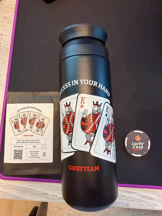 Какой-то модный термос, дрип-кофе( я оч люблю их) и фишечку!