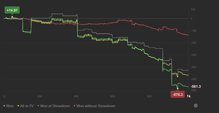 Худшие месяцы уходящего года ever и покер тут только вишенка на торте. За столами полный кардед. Я даже если карты оппонентов постфлоп буду знать, сессию все равно в плюс не скатаю. Только из-за новогодних составов и регов долбоебов это месяц пока все равно идет в плюсе.