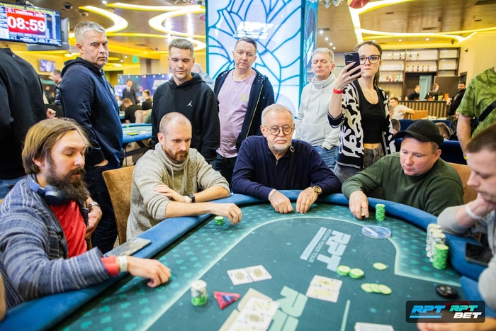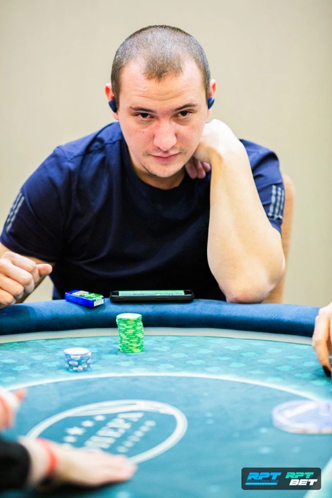 За другим столом потеряли Ивана Ковалева. Он отдал свои фишки в бокс Никиты Микалапа < . Доска: .