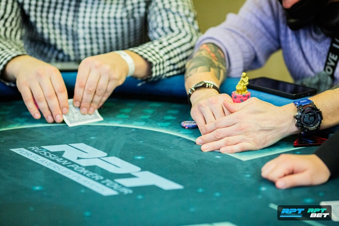 Александр Фролов открылся 40к из середины, Дмитрий Каверзин и Филипп Ронжин уравняли на блайндах.