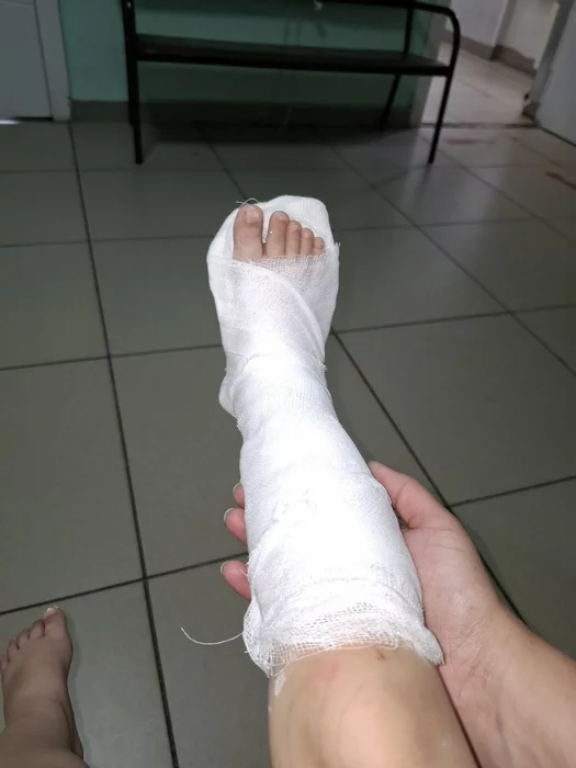 За день до отъезда начинаю собирать вещи, а моя умница дочка принимает решение, что 2,5 года, это тот самый возраст, когда необходимо впервые спрыгнуть с кровати. Придумано – сделано. Секундный кайф от полета, а дальше крики, сопли, слезы. На ногу наступать может, но мне не нравится, как выглядит ее нога. Едем в травмпункт, делаем снимок – небольшой перелом голеностопного сустава. Доктор сомневается между тугой повязкой и лангеткой. В итоге принимает такое решение