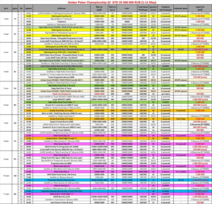 - 15:00 МСК (14:00 по Калининграду) степ к финальному сателлиту Main Event Day 1.