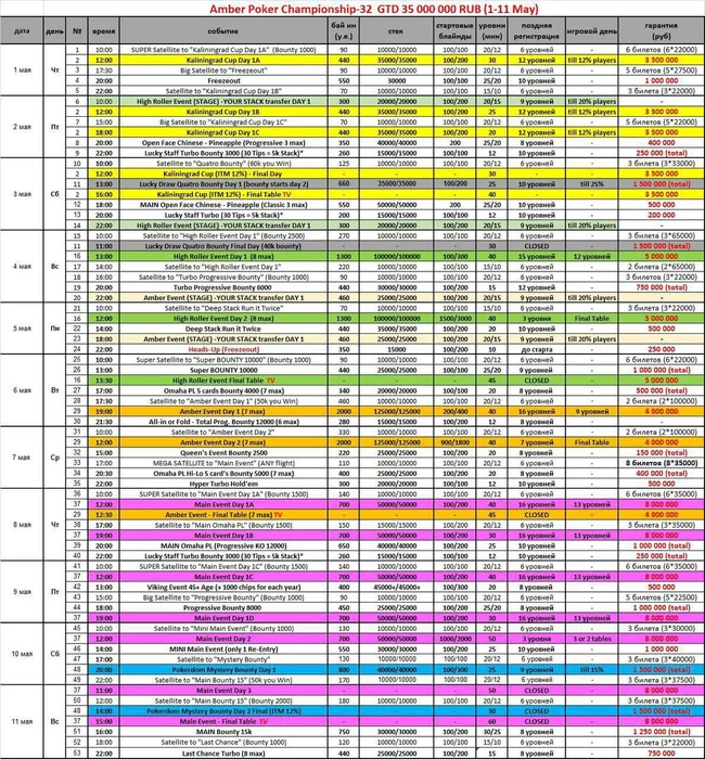 - 18:00 МСК (17:00 по Калининграду) финальный сателлит к турниру Main Event.