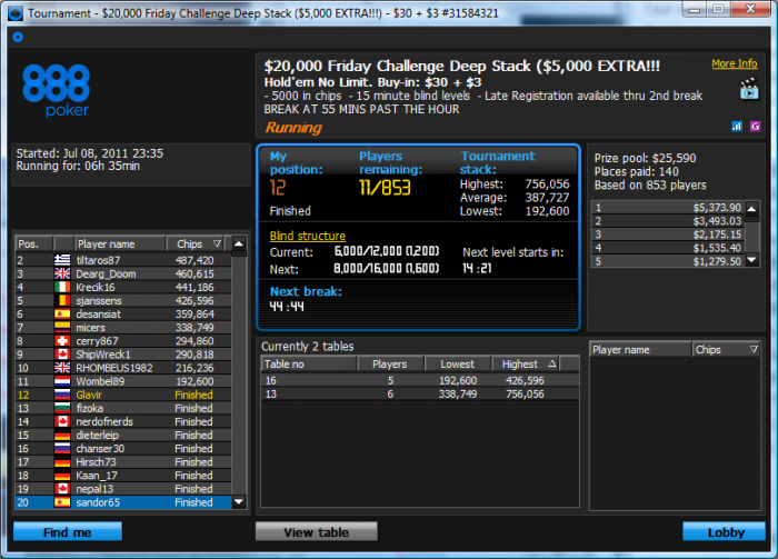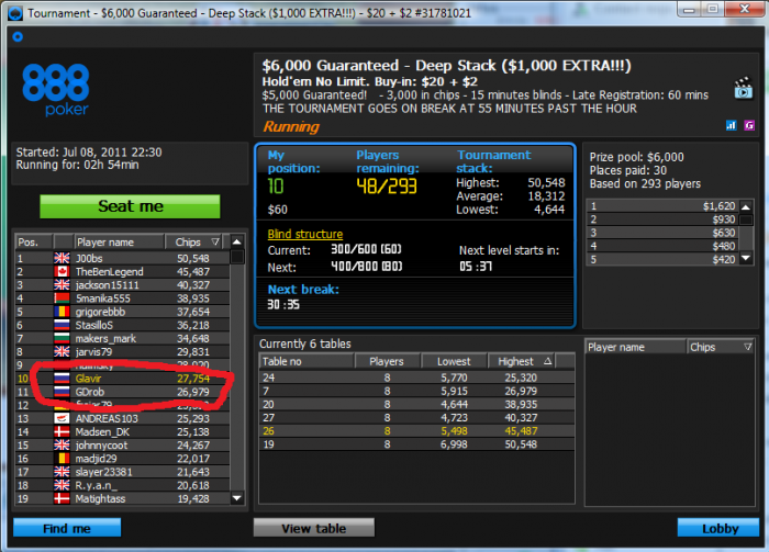 Сыграю небольшую сессию. Мини-БРа на старазах опять нет. Обменялся вчера 100 долларов, с 888 на старз, но уже вгрузил их в вчерашнюю и сегодняшнюю сессии. Надо дождаться пока придет кешаут, надеюсь, что сегодня-завтра и депнуть деньги под залив. Ну а лучше затащить сегодня, хотя бы тыщенок 5. ГЛ МИ.