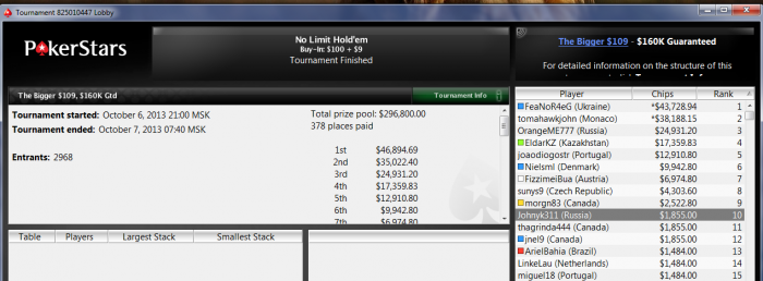 4) Big $109. На опонента совсем нет инфы, но судя по размеру 3бета пре - телефон. Ну тут один вопрос, на терне изи пих???
