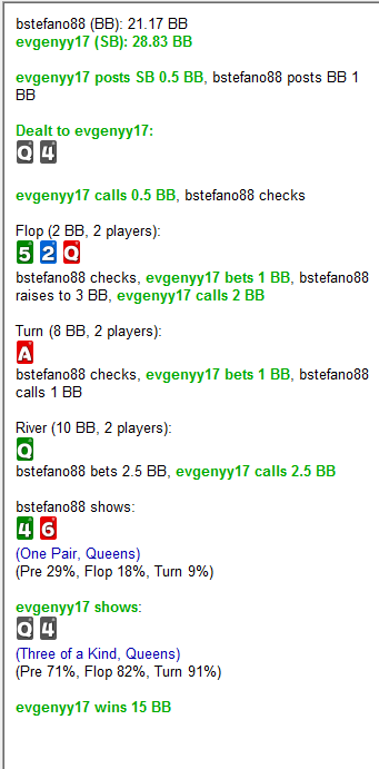 P.S. evgenyy17, хуя ты тащишь по 2к за день, а я то думаю, хули одни 2х два дня подряд выпадают) Надо было тебе пари на фактический профит делать, а не на ев