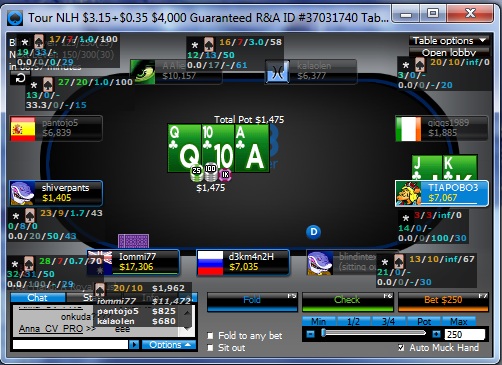 UTG+2 checks, Hero bets $666, UTG+2 calls $666