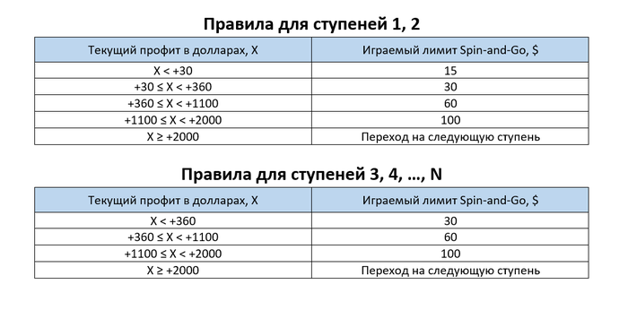 11. Игра ведется только в руме Pokerstars. Я имею право играть любые другие дисциплины (в том числе Spin-and-Go с лимитом, отличным от 15, 30, 60 или 100), а также в других румах, но эти результаты никак не учитываются и не влияют на достижение цели. В случае изменения румом Pokerstars схемы лимитов в Spin-and-Go будет произведена корректировка правил продвижения по ступеням.