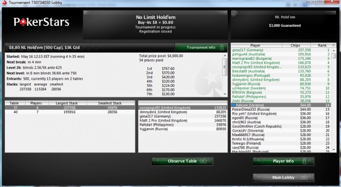 traxting @ 16.5.2013 че-то сбоит у тебя, постоянно на предфиналках вылетаешь. А не хочешь МТСНГ за 4.50 на 180 чел играть? мне кажется неплохо у тебя будет получаться