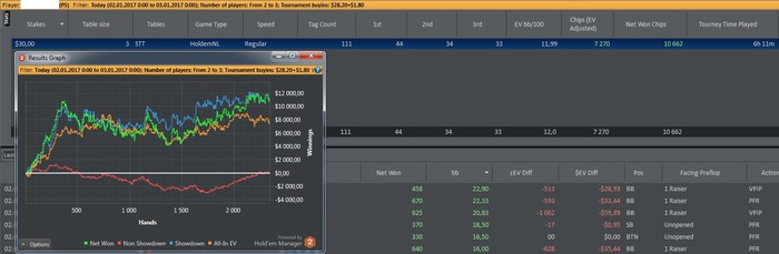 Напомню, год начался с продолжения гринда на 15 лимите, hyper turbo HU sng. Результат этого гринда можно видеть на 20-ой странице. Играл еще вначале года, полмесяца кеш NL50 зум ХУ. Результат хороший, но не особо интересно. Все это связано было, с тем, что мне не хотелось переходить в Spin and Go.