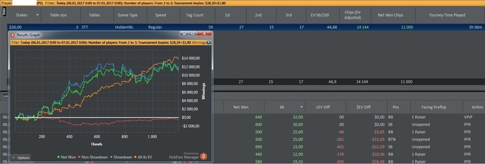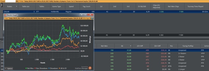 Конечно не плохо, с учетом меняющихся тактических приемов и работы над игровыми аспектами. Есть и минуса - даже с учетом, того, что не мало времени тратилось вне игрового стола на покер, сыграно достаточно мало по кол-ву. В остальном все хорошо.