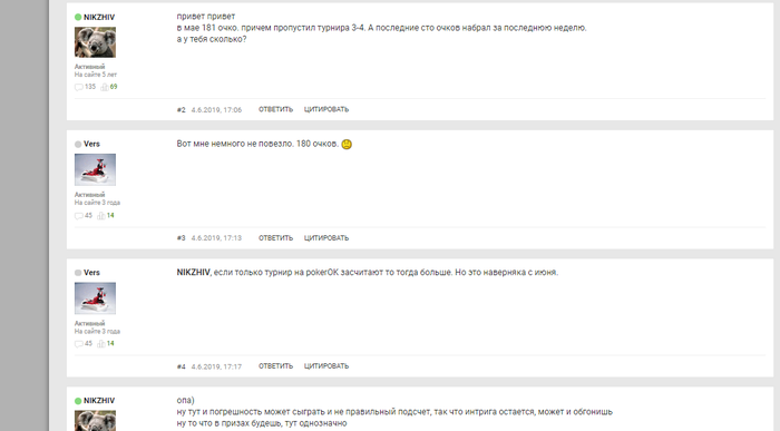 если уж так пошел разговор, то если ты считаешь все турниры с PokerOk, то они не входили в лигу в мае месяце, лично спаршивал у Fouer